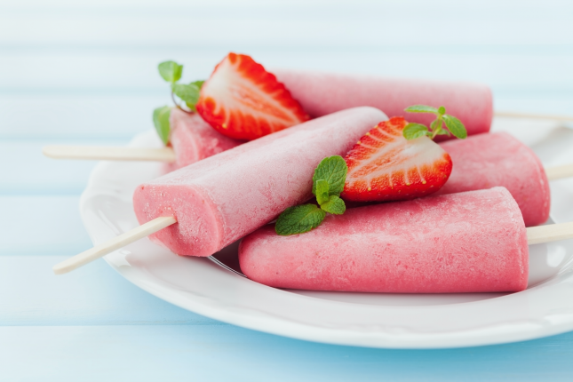 Ha så massen i iskremformer. Har du ikke former kan du eksempelvis kjøpe små engangskopper du har isen i eller små shotglass i plast- og så stikke en ispinne i når du har hatt i massen.