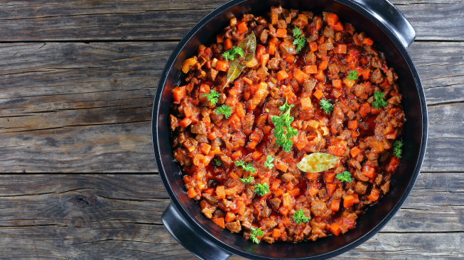 Dette kan du klargjøre på forhånd. Stek kjøttdeig med krydderet over. Smak til hvor mye smak du ønsker. Ønsker du den litt spicy kan du også bruke litt chilli.