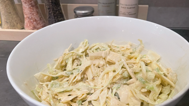 Denne kål og selleri-salaten er enkel å lage, og den holder seg i flere dager i kjøleskapet.