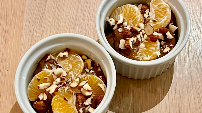 Jeg var litt inspirert av jul, og toppet derfor med appelsin og hasselnøtter denne gangen.